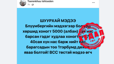 Бид энэхүү мэдээлэлд факт-чек хийсний дүнд уг мэдээлэл нь хуурамч болохыг тогтоолоо. Учир нь БНХАУ-ын ӨМӨЗО-нд Коронавирусын бүртгэгдсэн тоог Монгол улсад бүртгэгдсэн мэтээр мэдээлжээ.