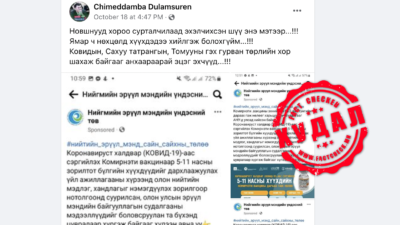Уг постыг 2020 оны тавдугаар сард олон нийтийн сүлжээнд иргэд түгээснийг FactCheck.mn нягтлан хүргэж байсан билээ. Гэвч ийнхүү жилийн дараа дахин постолсныг хүн шэйрлэж, 436 хүн лайк дарж, 30 хүн коммент бичсэн нь иргэд аливаа мэдээллийг нягтлахгүйгээр хүлээн авч байгааг илтгэж байна.