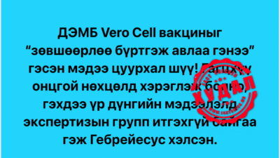 Tserenkhuu Ishtseden хэмээн фэйсбүүк хэрэглэгч “ДЭМБ Vero Cell вакциныг “зөвшөөрлөө бүртгэж авлаа гэнээ” гэсэн мэдээ цуурхал шүү! Гагцхүү онцгой нөхцөлд хэрэглэж болно, гэхдээ үр дүнгийн мэдээлэлд экспертизын групп итгэхгүй байгаа гэж Гебрейесус хэлсэн” гэсэн постыг тавдугаар сарын 8-ны өдөр нийтэлжээ. Уг постыг 213 хүн цааш түгээж, 139 хүн сэтгэгдэл бичиж, 532 хүн лайк дарсан байна. […]