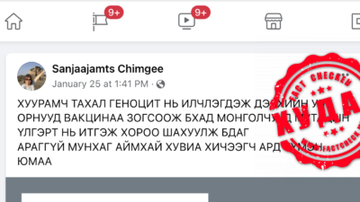 Дэлхийн улс орнууд вакцинаа зогсоож эхэлсэн гэсэн пост сүүлийн үед цахим орчинд гараад байна. Тухайлбал, Sanjaajamts Chimgee гэх фэйсбүүк хэрэглэгч 2021.01.25-нд “ХУУРАМЧ ТАХАЛ ГЕНОЦИТ НЬ ИЛЧЛЭГДЭЖ ДЭЛХИЙН УЛС ОРНУУД ВАКЦИНАА ЗОГСООЖ БХАД МОНГОЛЧУУД МУТАЦЫН ҮЛГЭРТ НЬ ИТГЭЖ ХОРОО ШАХУУЛЖ БДАГ АРАГГҮЙ МУНХАГ АЙМХАЙ ХУВИА ХИЧЭЭГЧ АРД ТҮМЭН ЮМАА” гэсэн пост оруулсныг 110 хүн шэйрэлжээ. Энэ […]