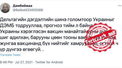 Иймд дээрх пост дахь агуулга нотлогдохгүй, олон нийтийг төөрөгдүүлсэн ТАШАА мэдээлэл байна.