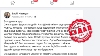 Иймд дээрх пост дахь агуулга нотлогдохгүй, олон нийтийг төөрөгдүүлсэн ТАШАА мэдээлэл байна.