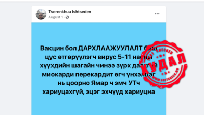 - Бямбаагийн Рэнцэнханд хэмээх иргэн нь КОВИД-19 цар тахлын үеэр коронавирусийн эсрэг вакцины талаар олон нийтийг ТӨӨРӨГДҮҮЛСЭН мэдээллийг түгээж байсныг бид нягталж байв.