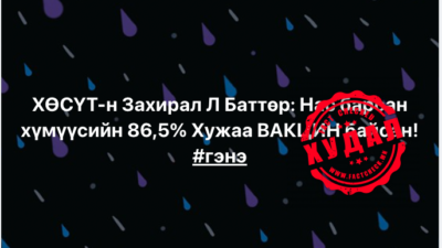 Иймд дээрх иргэн бодит судалгааны үр дүнг буруу, дутуу тайлбарлаж, олон нийтийг айдаст автуулж, ТӨӨРӨГДҮҮЛСЭН байна.
