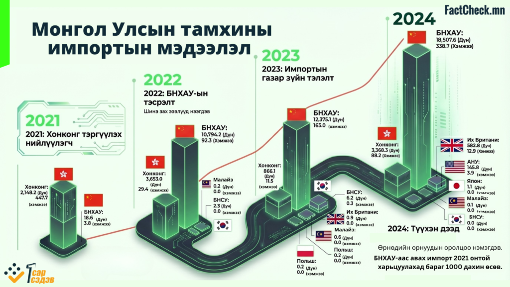 Энэхүү статистик нь манай улсын тамхины импорт БНХАУ-аас өндөр хамааралтай байгааг илтгэж байна. 2021 онтой харьцуулахад Хятад улсын тамхины импорт 41 дахин өсжээ. Харин тус улс өөрөө нарийн зохицуулалттай гэдгийг сануулах хэрэгтэй.